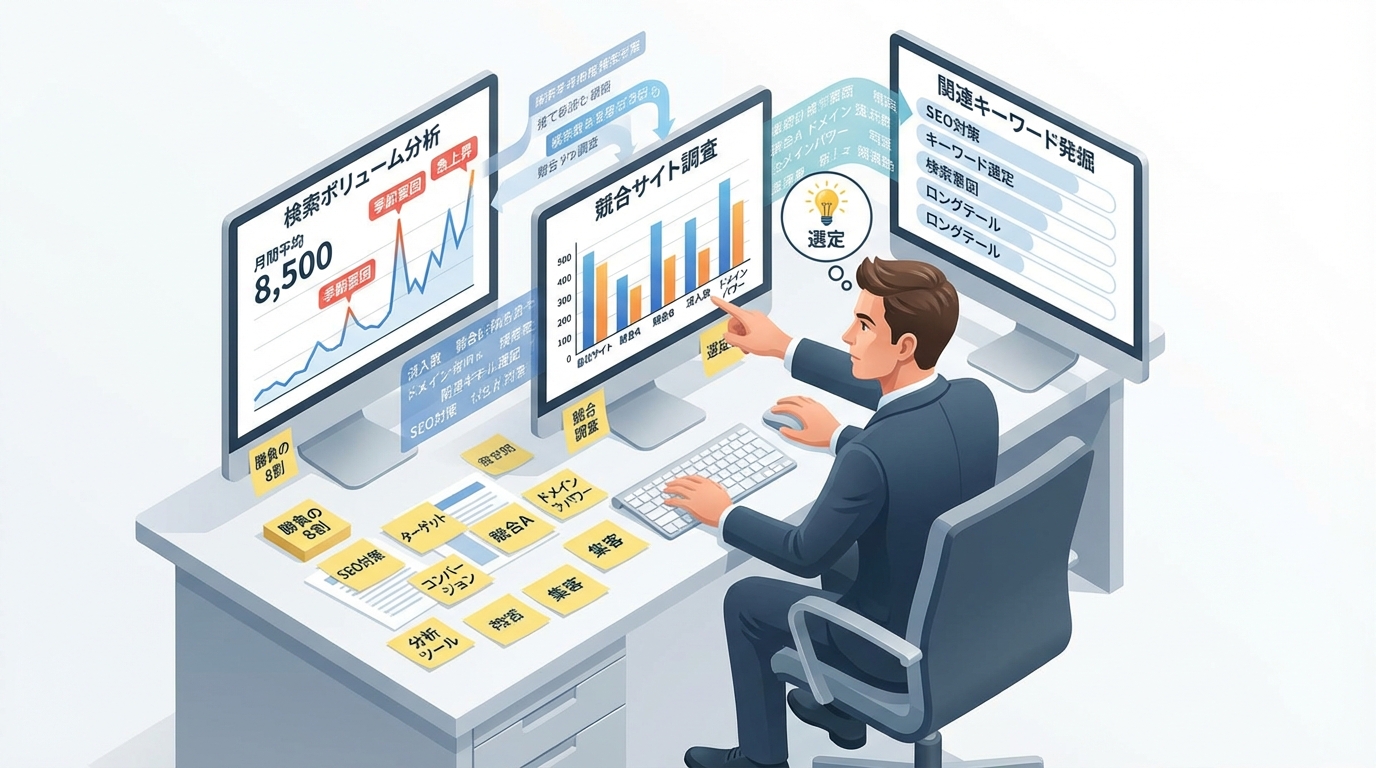 キーワード選定を「なんとなく」で済ませると、どれだけ時間をかけて書いても検索流入はほぼゼロ。ここに時間をかけることが、結果的にいちばんの近道です。