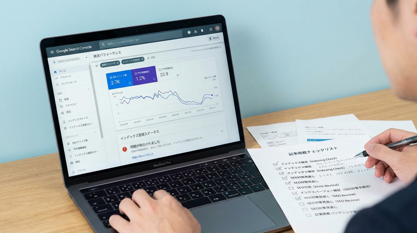 インデックスされているのに順位が低い場合は、以下のポイントを順番にチェックしてみてください。検索意図とのズレがないか、上位記事に比べて情報が不足していないか、タイトルやメタディスクリプションが魅力的か、内部リンクが適切に貼られているか。この4つをチェックするだけで、問題の8割は特定できますよ。