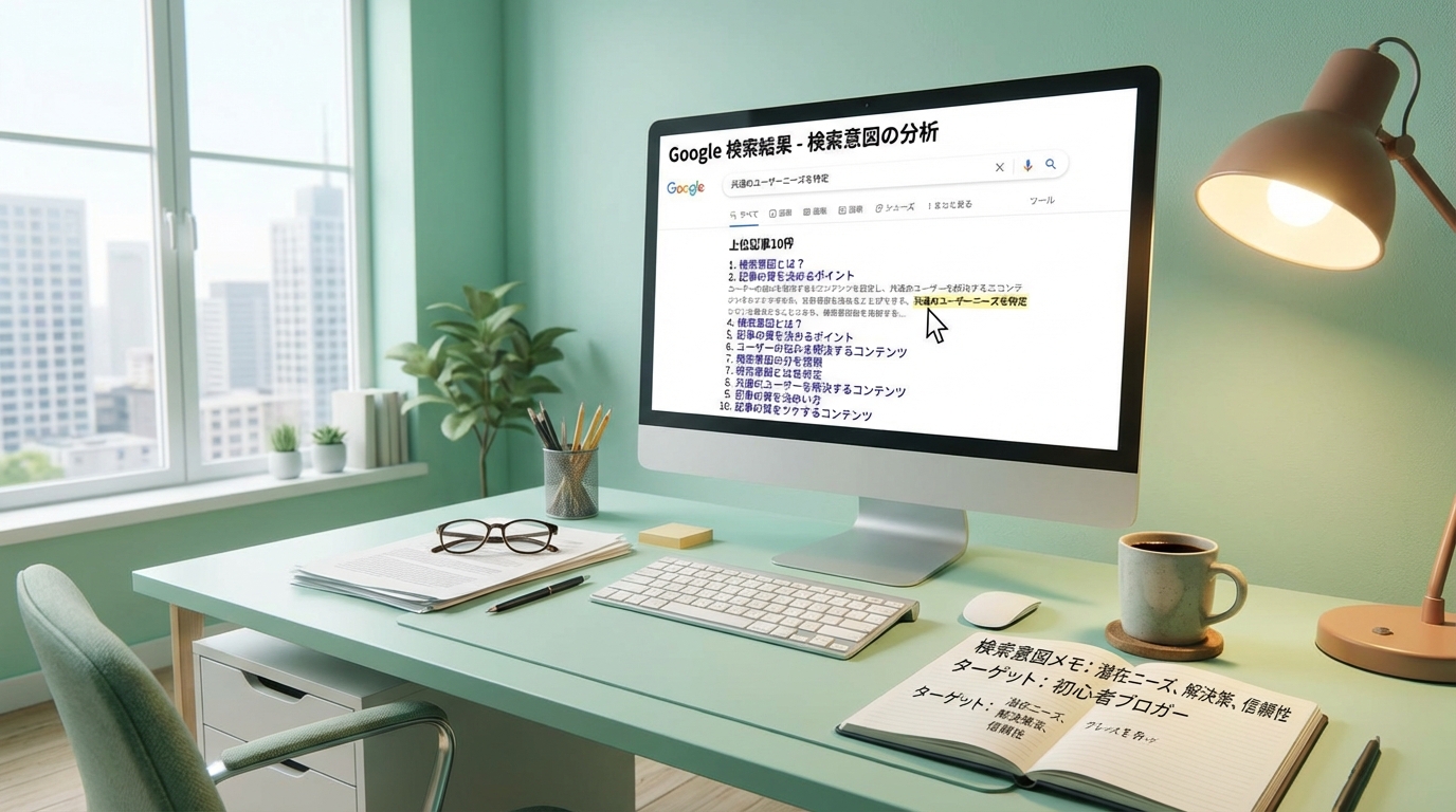 検索意図(ユーザーインテント)の分析が、SEO記事の品質を左右する最大の要因です。キーワードを決めたら、次にやるべきことは「そのキーワードで検索する人が、本当は何を知りたいのか」を徹底的に調べること。ここを外すと、どんなに丁寧に書いても「なんか違うな」と思われて離脱されちゃいますよね。