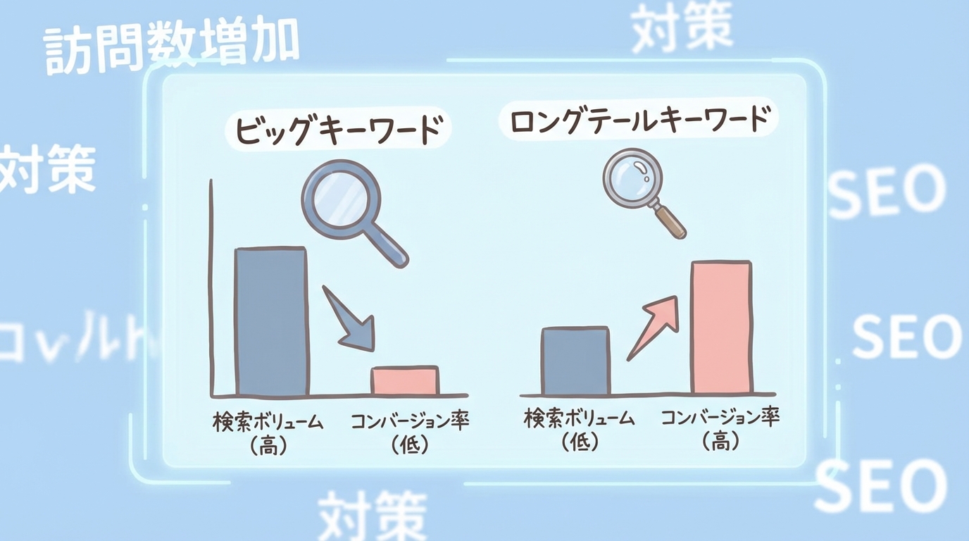 | 狙うキーワード | ビッグワード中心 | ロングテール中心 |