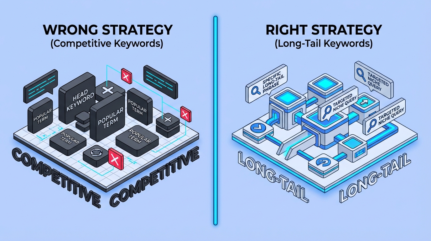 僕も最初は「検索ボリュームが大きいキーワードを狙えばいい」と思っていました。でも3ヶ月間、毎日記事を書いても順位が全く上がらなかった経験があります。そこで戦略を変えて、ロングテールキーワードを中心に攻めるようにしたら、4ヶ月目から急に上位表示されるようになったんです。近道はない。積み上げた者が勝つ——これは建設業から学んだ教訓でもあります。