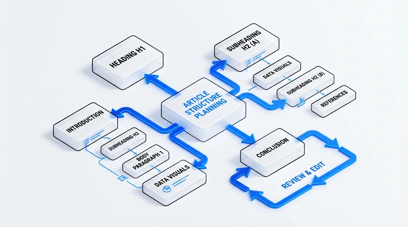 多くの人が「とりあえず書き始める」という方法を取りがちですが、実はこれが非効率の原因になっています。プロのライターは、必ず記事構成案を作ってから執筆に入ります。構成案とは、記事の設計図のようなもの。見出し(H2、H3)の順番、各セクションで何を書くか、どの順番で情報を出すかを事前に決めておくんです。
