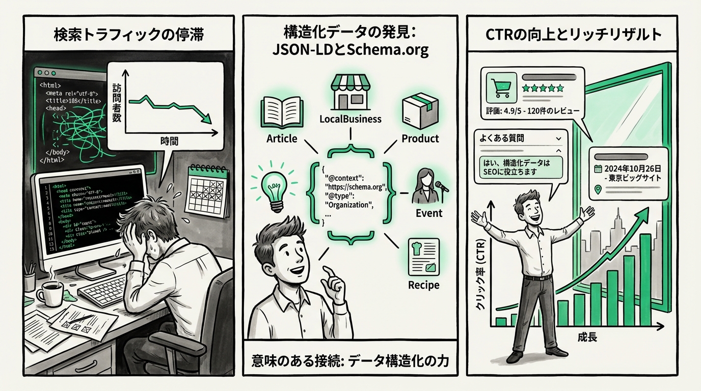 構造化データの基本から実装方法、リッチリザルトによるCTR改善効果まで中小企業向けに解説。JSON-LDの書き方や検証ステップを今すぐチェック。