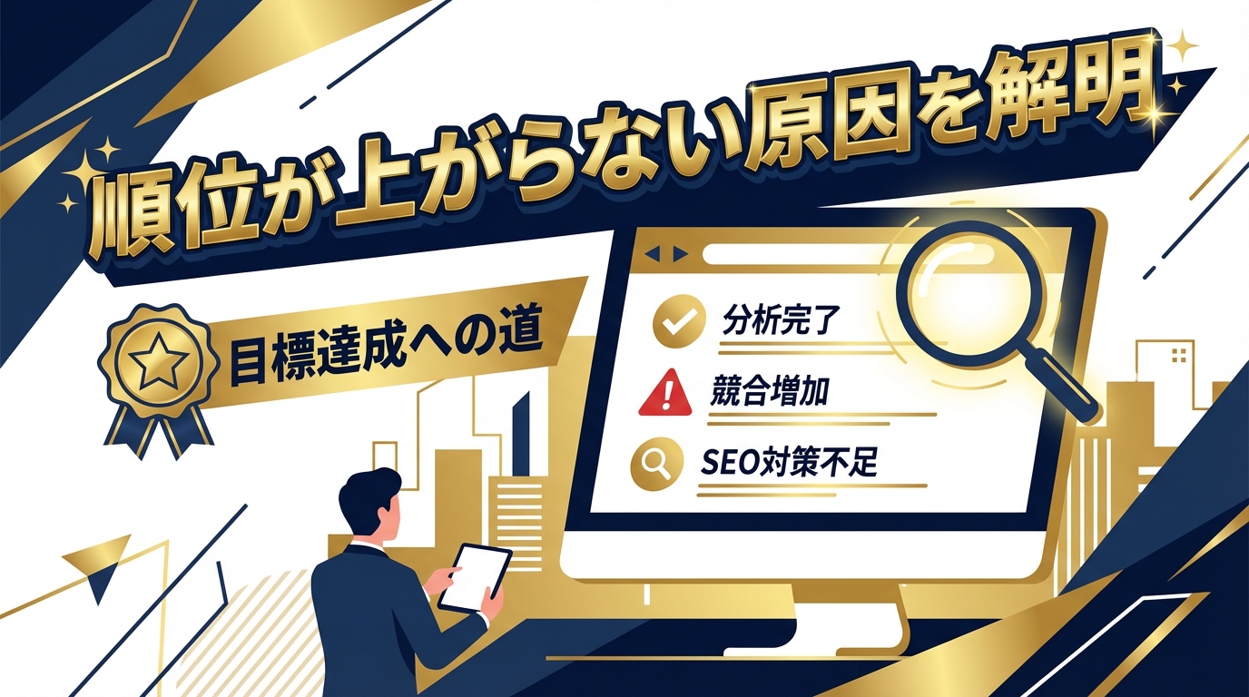 検索順位が上がらない原因を技術面・コンテンツ面・競合面から5つの診断法で特定できます。Search Consoleを使った具体的なチェック手順と改善策を解説。今日から実践できるセルフ診断を今すぐ試してみてください。