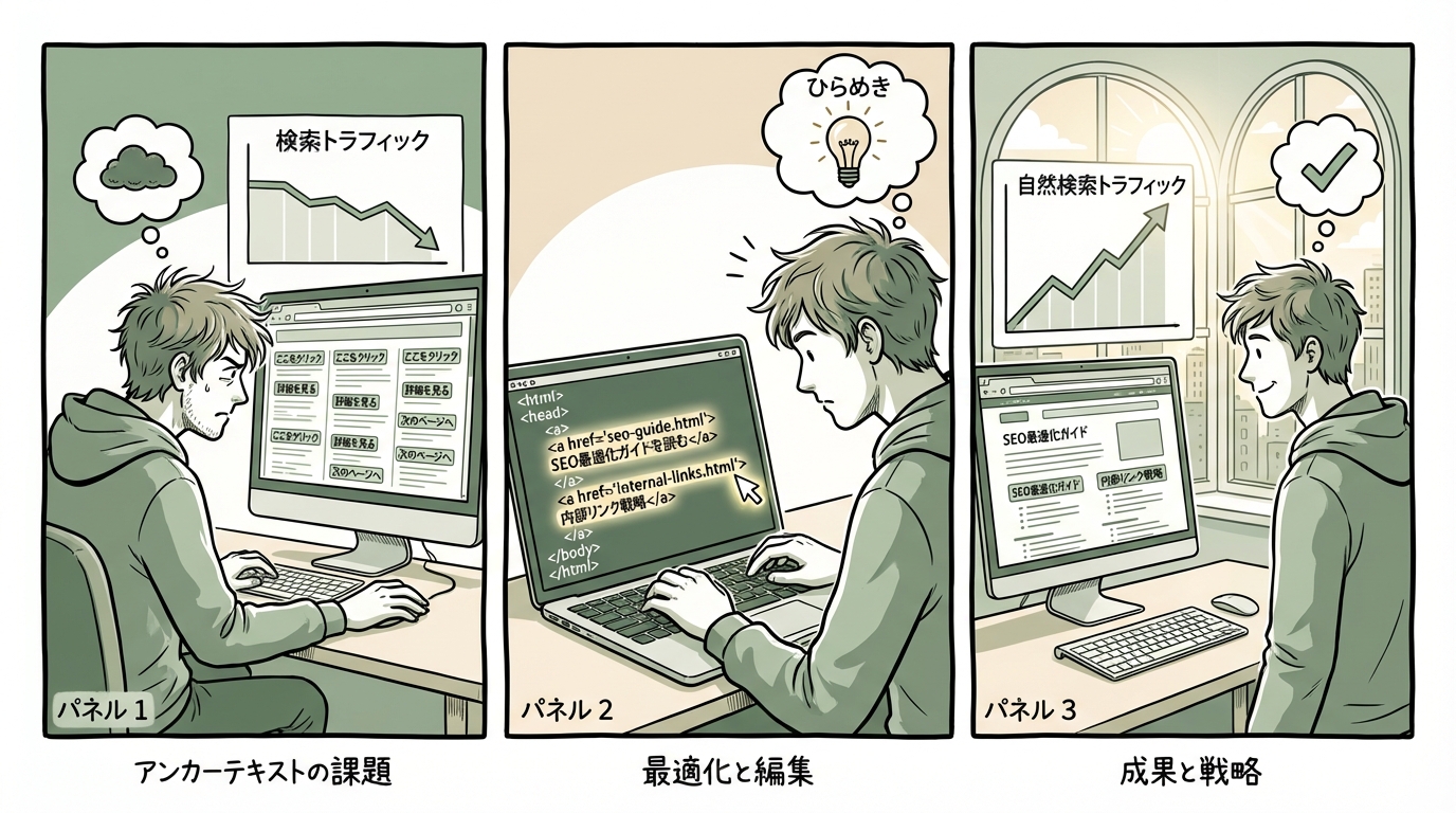 アンカーテキストの正しい書き方とNG例を網羅解説。クリック率2.7倍・検索流入42%増の実例付きで、初心者でも今日から改善を始められます。具体的な改善手順を今すぐチェック。
