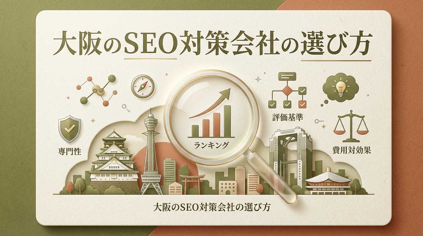 大阪のSEO対策会社選びで失敗しないための判断基準を5つの軸で整理。費用相場・実績の見方・AI時代の対応力まで網羅した実践ガイドを今すぐチェック。